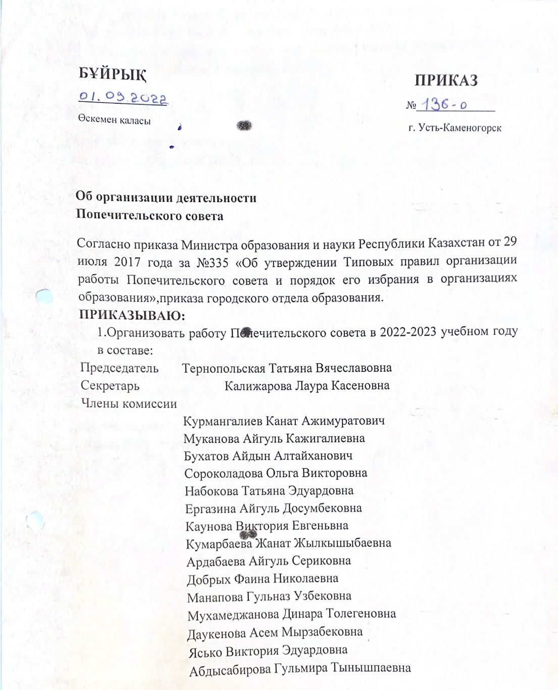 Қамқоршылық кенесінің құрылуы. Об организации Попечительского совета » Средняя школа №6