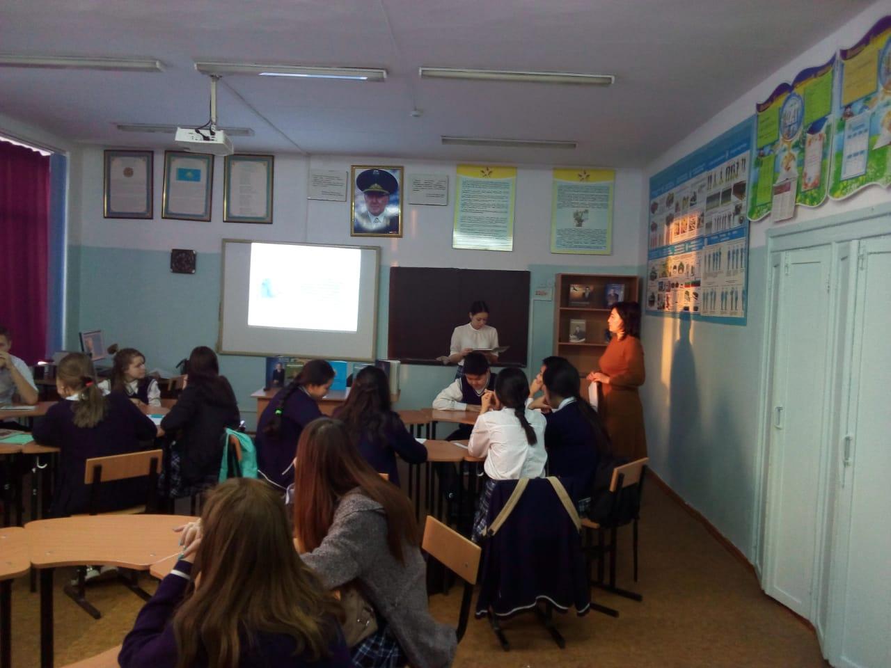 28 қараша күні мектебімізде Тұңғыш Президент күніне орай ашық сабақ өткізілді. Мақсаты: Қазақ халқының тұңғыш президенті Нұрсұлтан Әбішұлы Назарбаевтың өмір жолы, туып-өскен, оқып білім алған, қызмет еткен жерлері туралы мағлұмат беру. Болашақ ұрпаққа Елбасының өмірін, еңбек жолын үлгі өнеге ете отырып, патриоттық сезімдерін арттыру, Отанын, халқын сүюге, ержүректілікке, азаматтыққа дағдыландыру. Ел президентін құрметтеуге, егемен елімізге қамқор болуға, шәкірт жүрегінде елбасына деген сүйіспеншілік сезімін ояту және құрметтеу. Сабағымыз Әнұраннан басталып, ары қарай тұңғыш Елбасымыз жөнінде көптеген ақпараттар айтылып, оқытылды.
