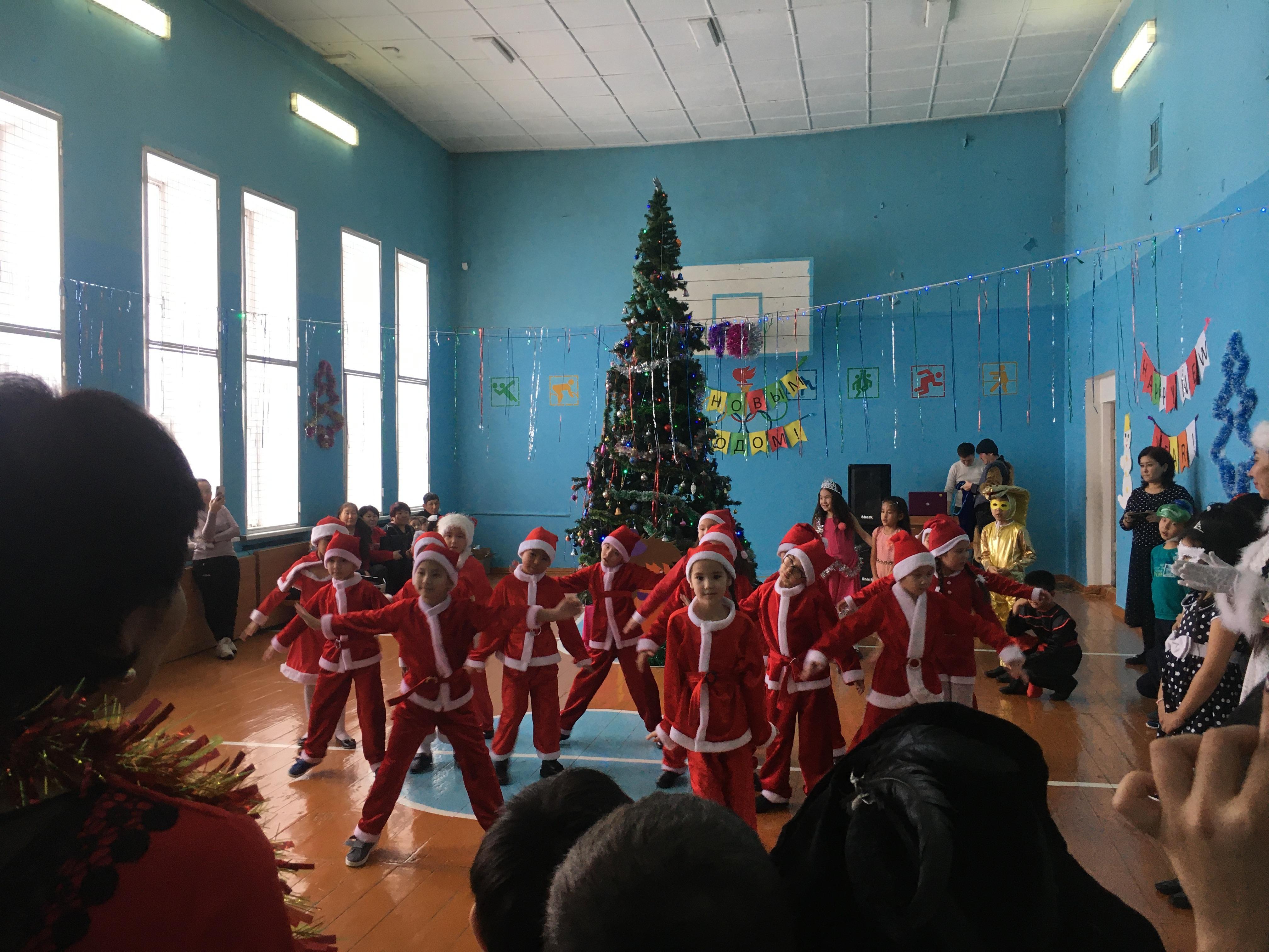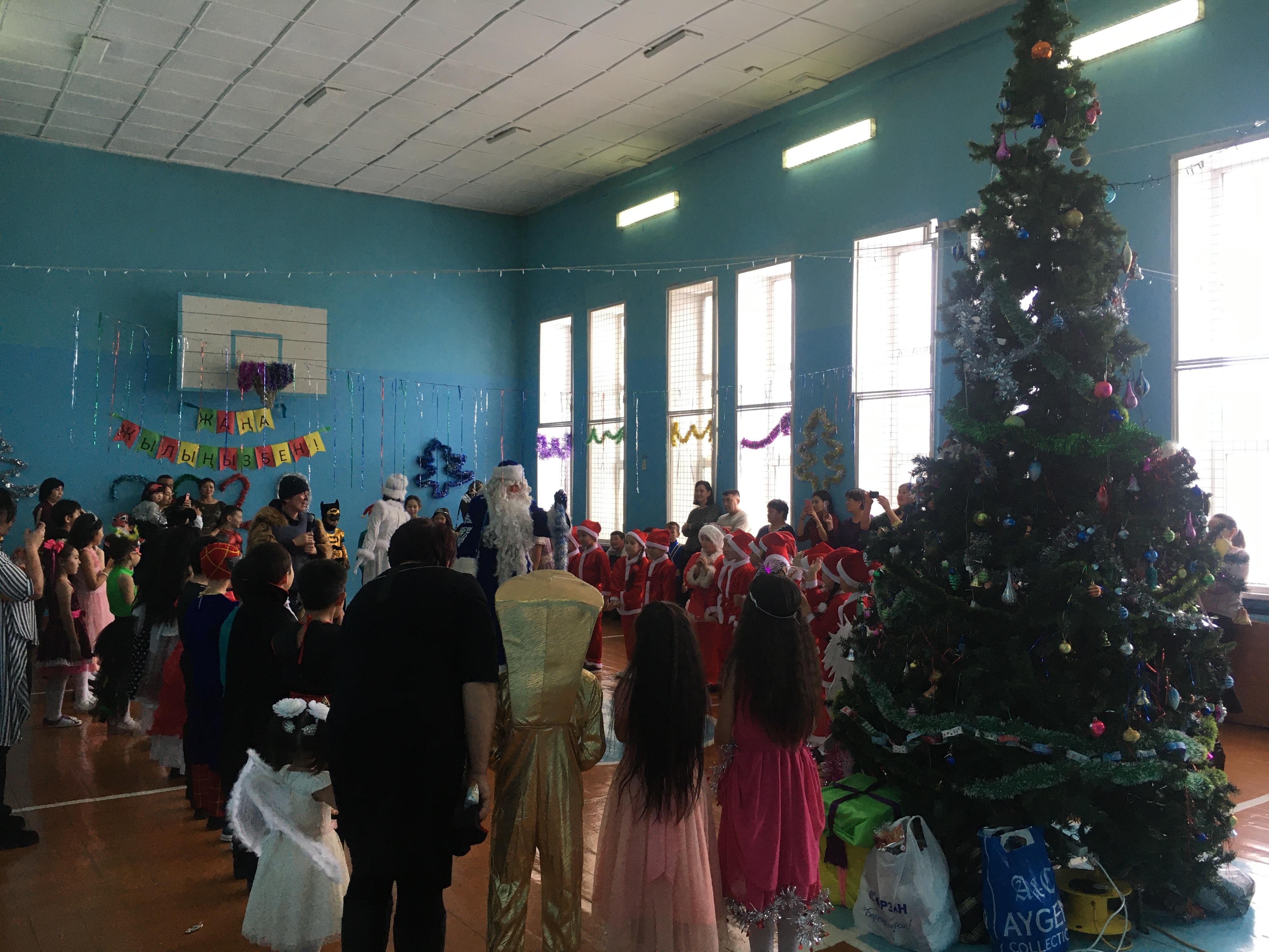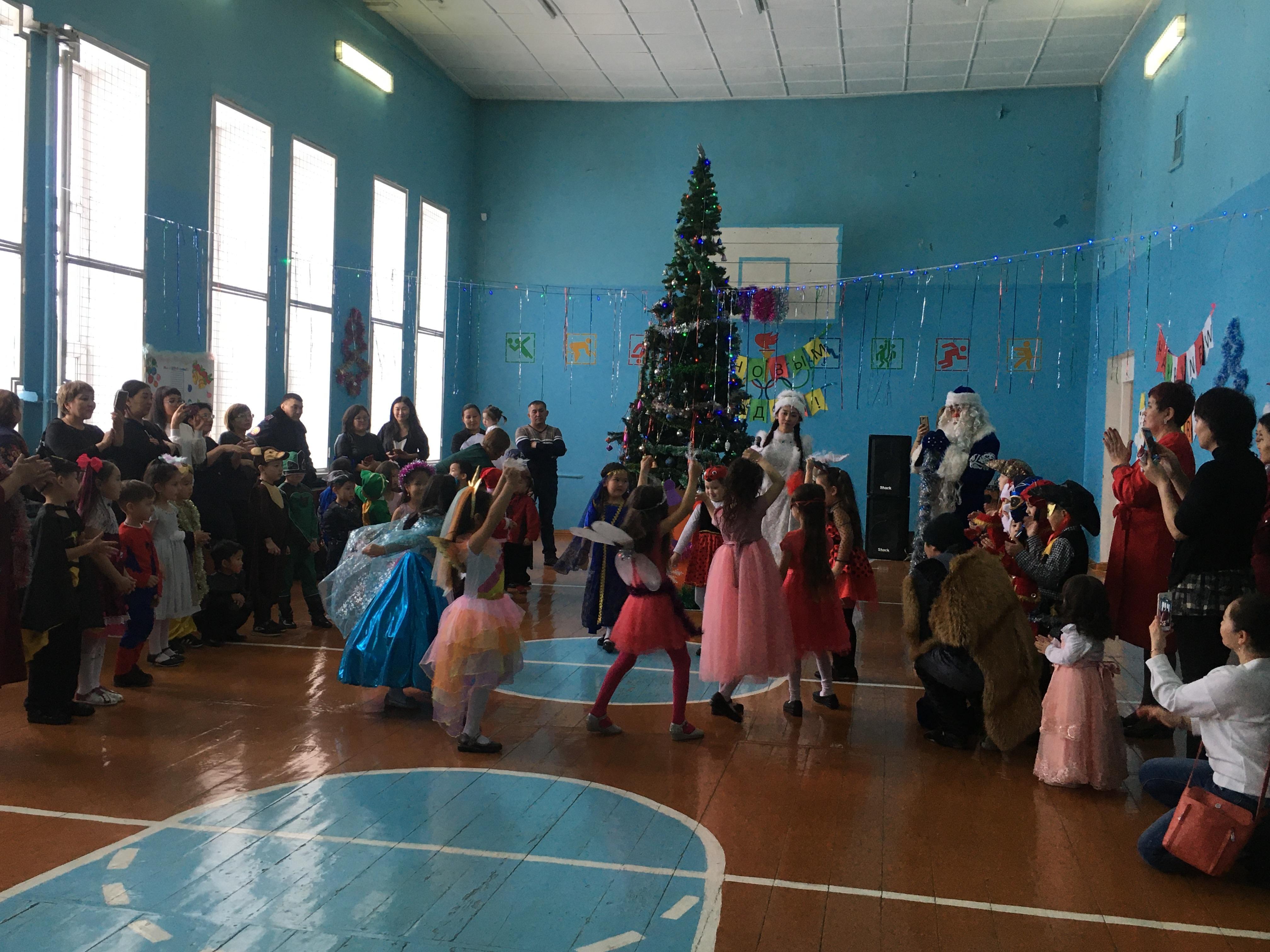 Балалар Аяз Атаны, Ақшақарды, Қоянды, Түлкіні, Аюды қарсы алды. Балалар ән айтып, би билеп, тақпақтар айтып, тәтті сыйлықтар алды. Ата-аналар мен оқушыларға жаңа жылдық бағдарлама ұнады.