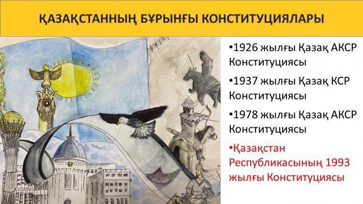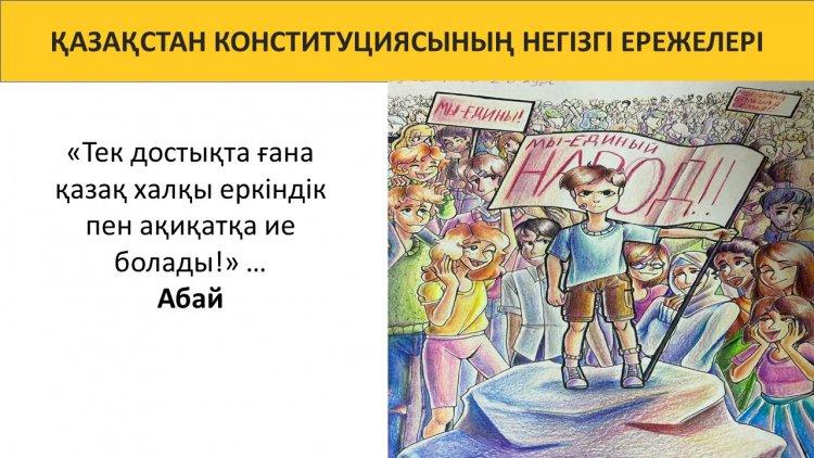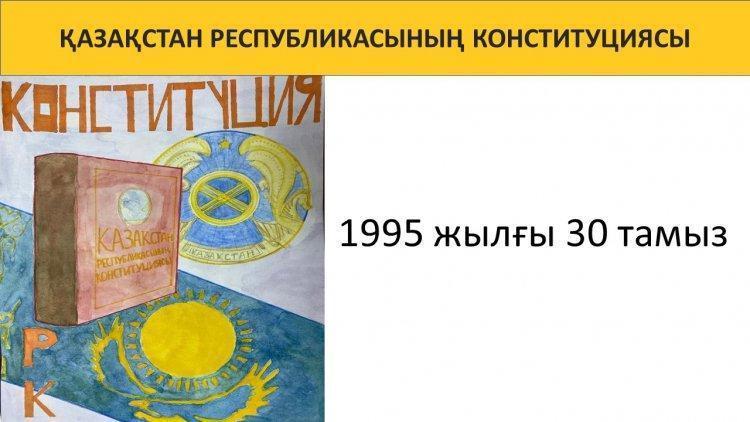 Қыркүйектің 15 күні Ата Заңымыздың 25 жылдығына орай 1-4 сыныптар арасында "Қазақстан Республикасының конституциясына-25 жыл" атты тақырыпта сынып сағаттары өткізілді. Аталған іш шара, оқушылардың бойына өз елінің негізгі заңы мен Отанға деген патриотизм, махаббат, сый сезімдерін дамытуға септігін тигізеді деген ойдамыз.