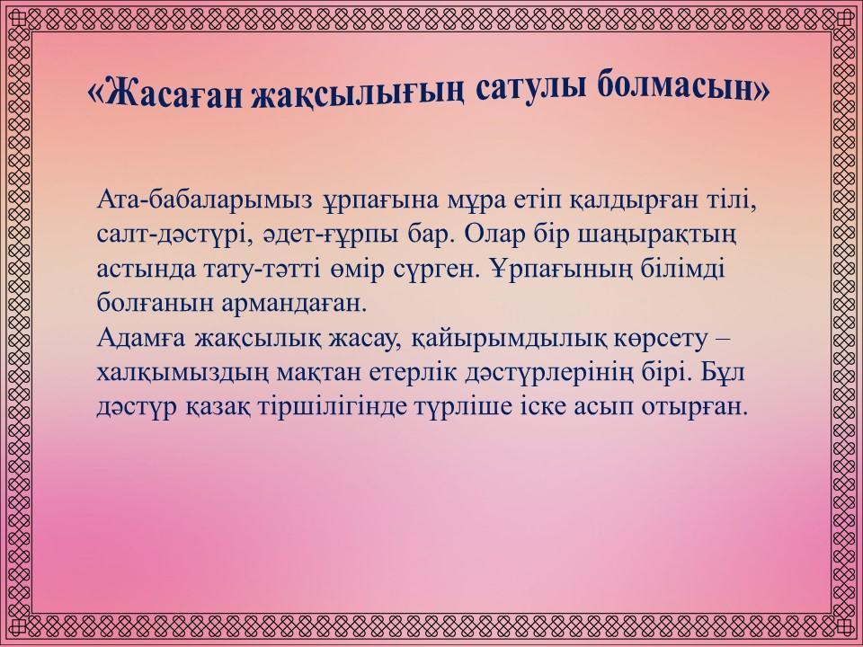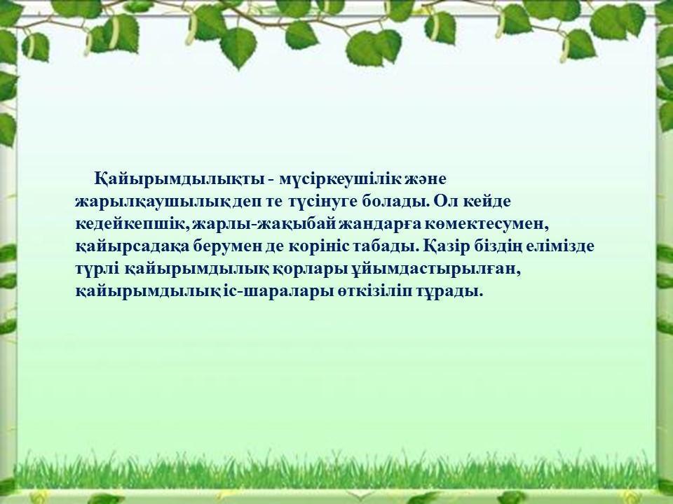 "Қайырымдылық-асыл қасиет" 8-"А" сыныбы » Средняя школа №6