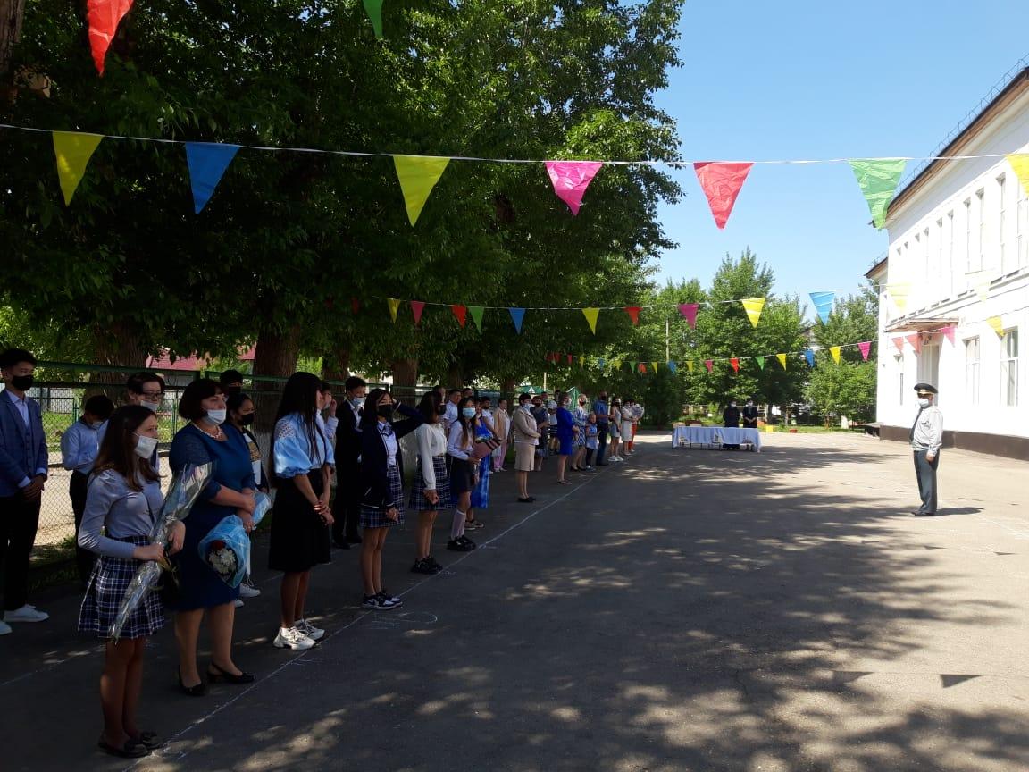 Салтанатты жиын мемлекеттік әнұранды орындаумен басталды. Келген қонақтар түлектерді қошеметпен ортаға шақырып, сый-құрмет көрсетті. Бұл күні 11 сыныптан 14 оқушы, 9 сыныптан 27 түлек атанып, жаңа өмірге қадам басты. Оқушылар өздерінің жүрек жарды жыр-тақпақтарын оқып, ән айтты.. Мерекелік шарада оқу жылының аяқталуымен мектеп директоры Аскарова А.А, ұстаздар, ата-аналар тілектерін білдірді. Озат оқушылар мақтау қағаздарымен, сынып белсенділері жыл көлемінде атқарылған іс-шараларға белсенді қатысқандары үшін, грамоталармен мадақталды. Жыл көлемінде мектептің қоғамдық іс-шараларына ат салысқан ата-аналар да алғыс хатпен марапатталды.