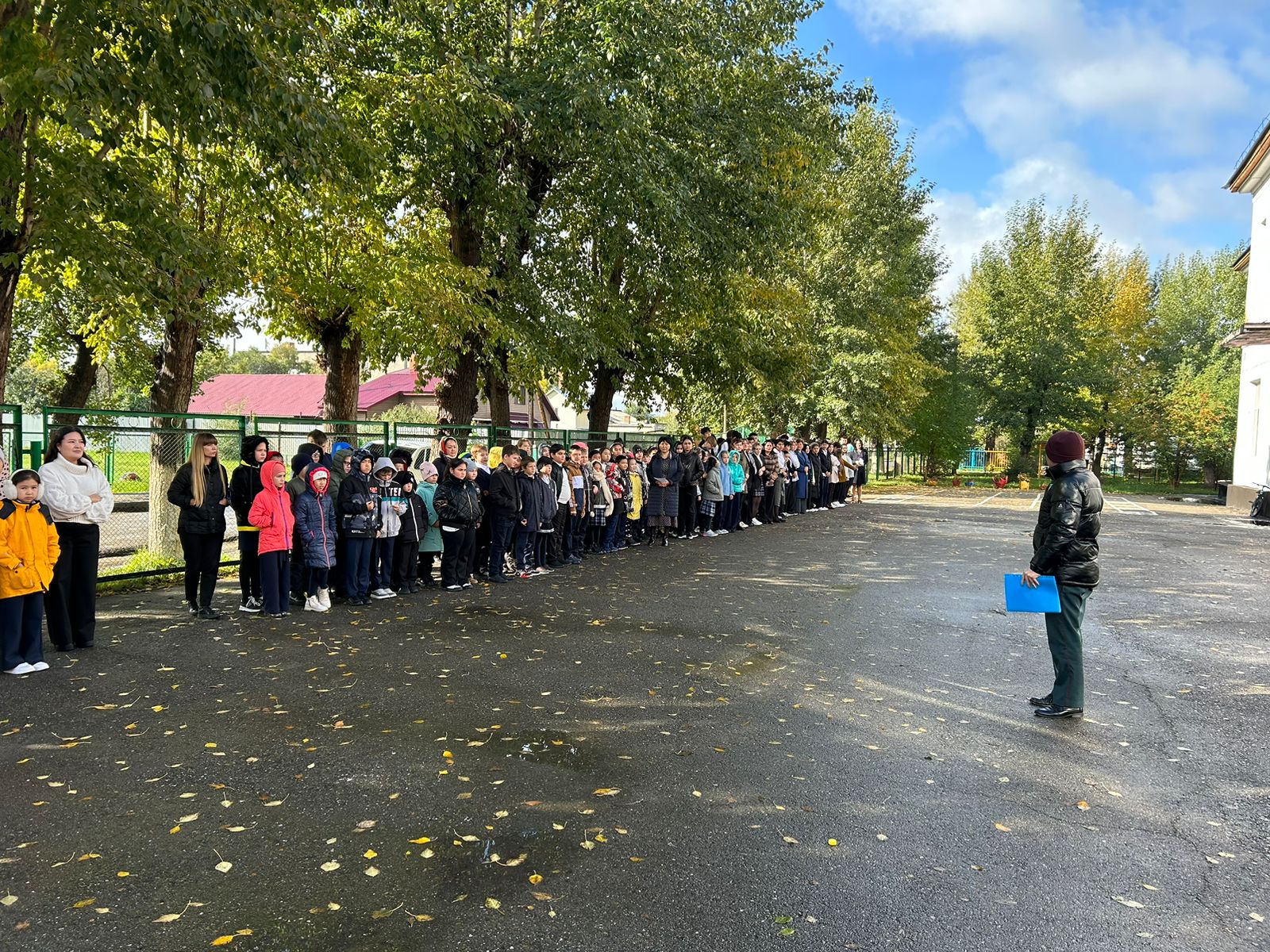 Халыққа және азаматтық қорғау саласындағы мамандарға хабар беру, ілімді насихаттау, оқыту қағидаларын бекіту туралы 430 15 тамыз 2023 жылығы заңына сәйкес нөмер 6 орта мектебінде сейсмикалық оқу- жаттығу жиыны өткізілді.
