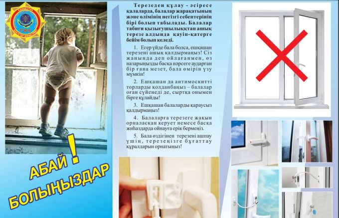 Ата-аналарға арналған ұсыныстар "Баланың терезеден құлап кету қаупі"