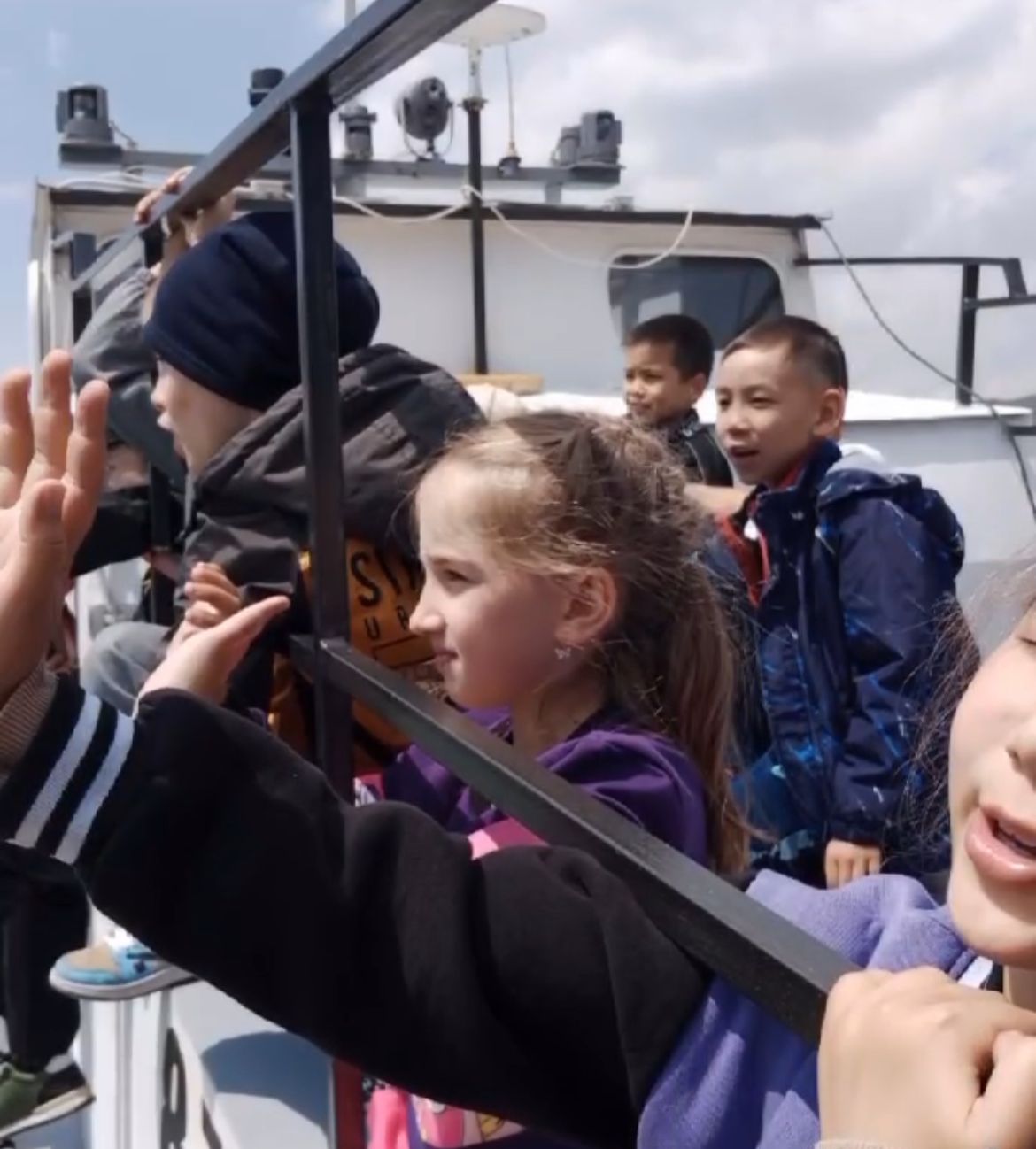 5 маусым күні «Достық» мектепішілік лагерінің балалары қайықпен экскурсияға барды. 5 июня дети пришкольного лагеря “Достық” посетили экскурсию на теплоходе. Дети с удовольствием любовались пейзажами родной природы.