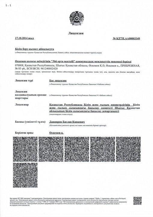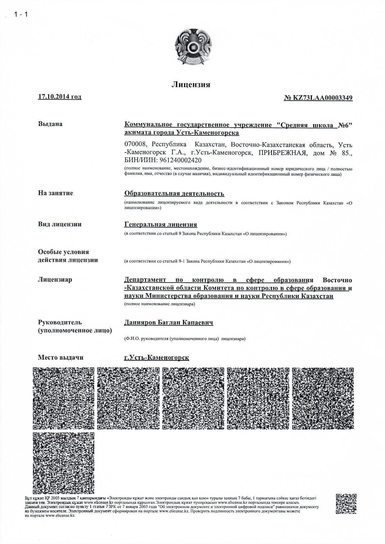 «Средняя школа №6» акимата г. Усть-Каменогорска
