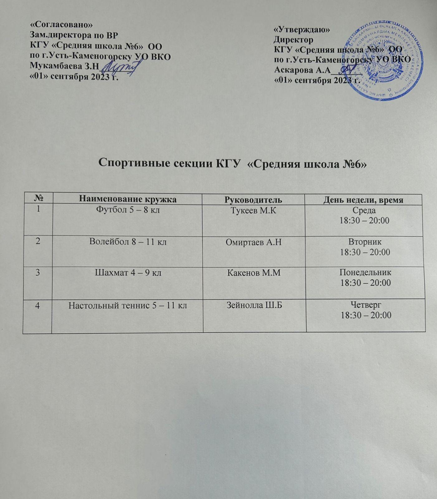 Спортивные секции КГУ "Средняя школа №6" » Средняя школа №6