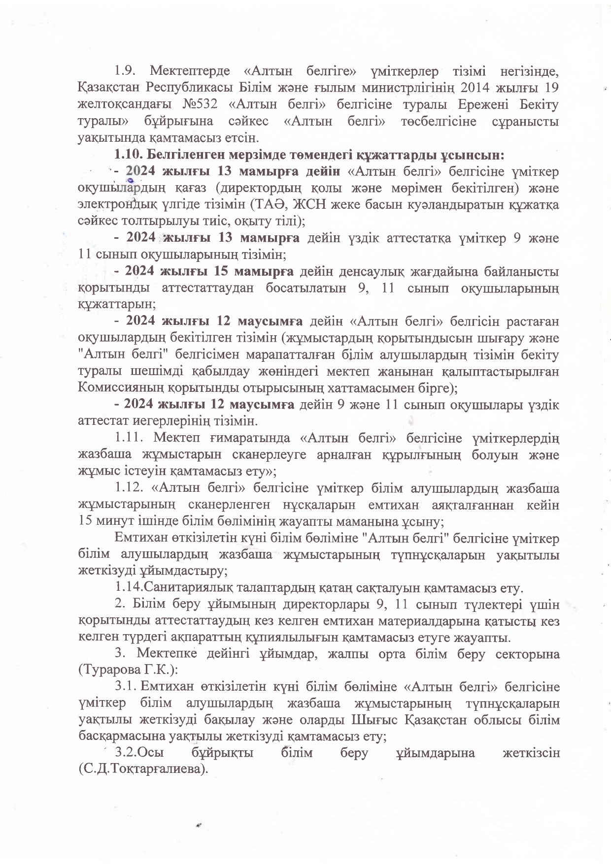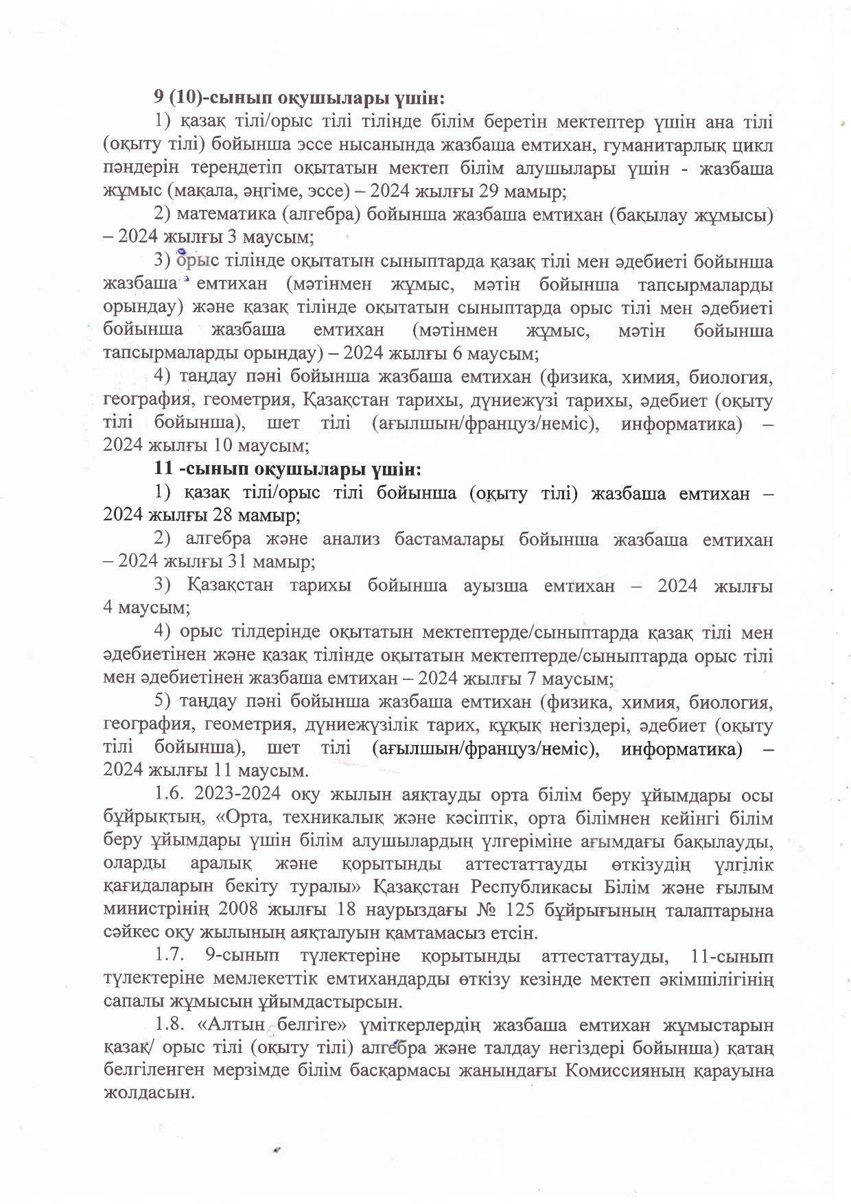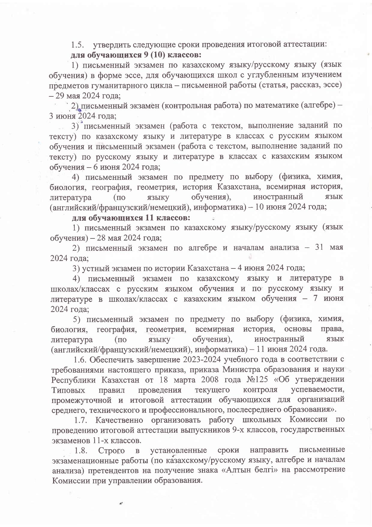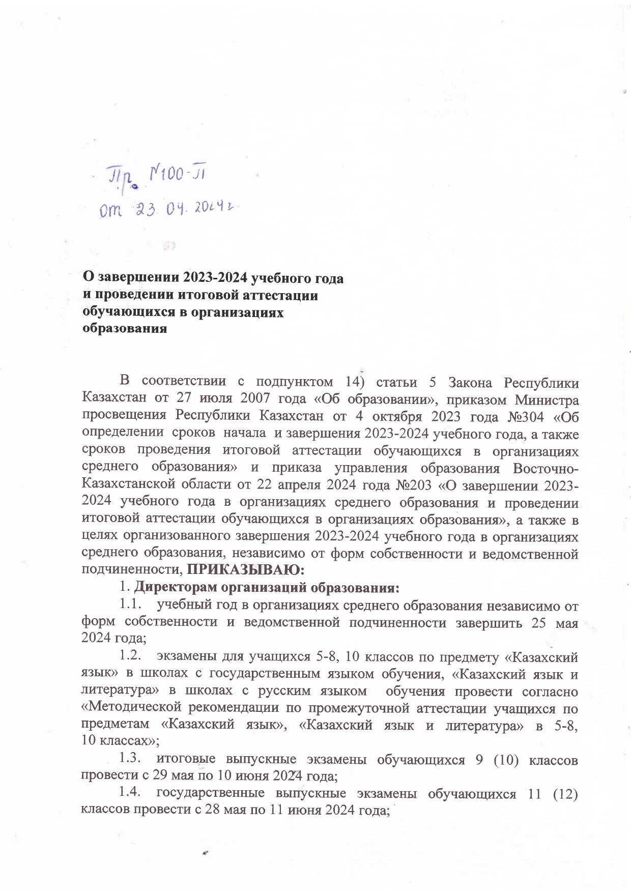 22 мамыр 2024 0 1 2 3 4 5 2023-2024 оқу жылын аяқтау және орта білім беру ұйымдарында білім алушылар қортынды аттестатаудан өткізу туралы