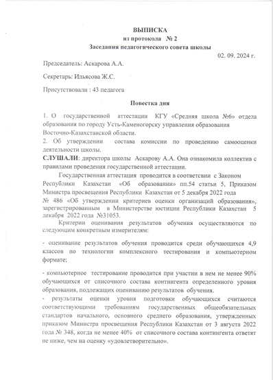 протокол пед.совета о самоаттестации » Средняя школа №6