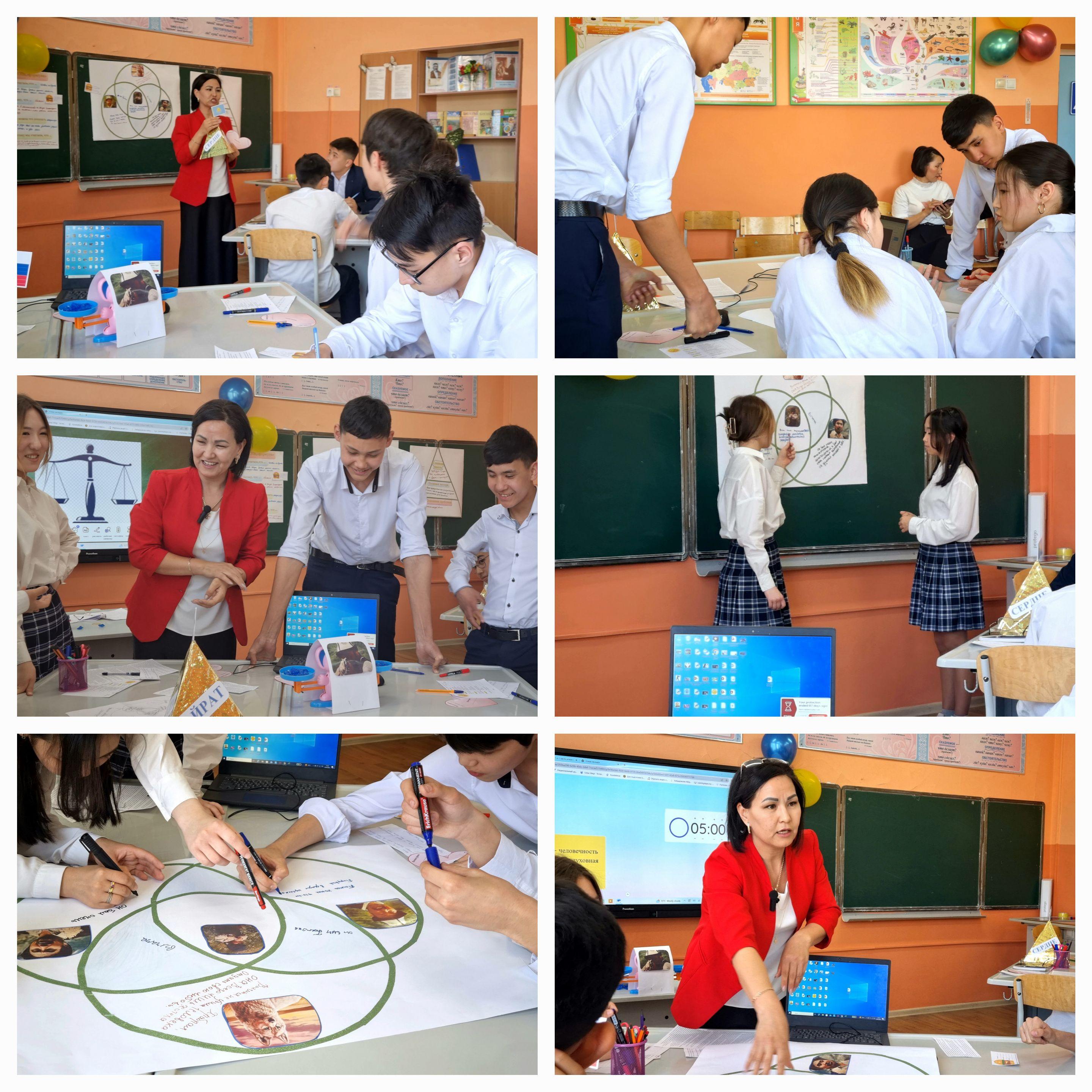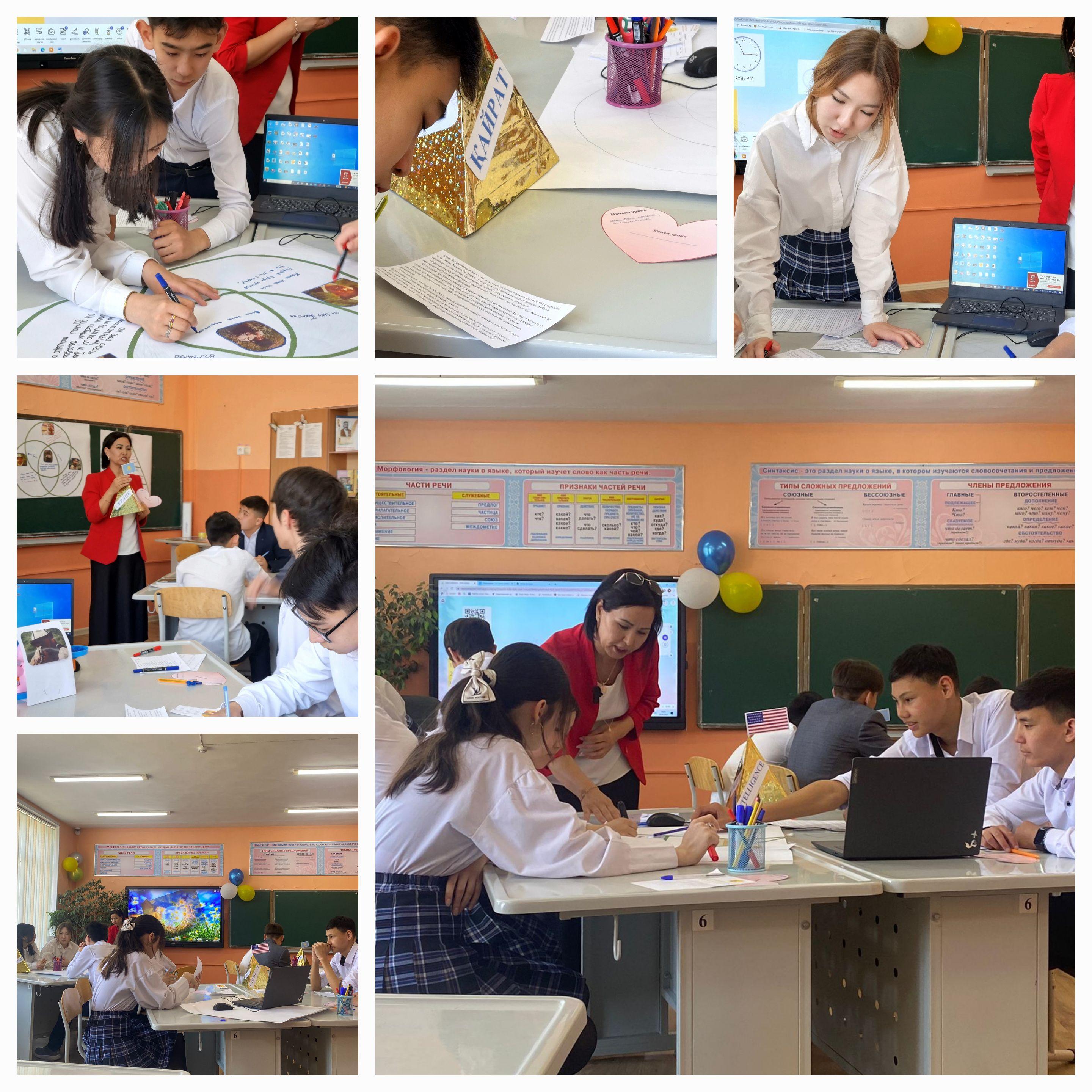 В ходе мероприятия был продемонстрирован опыт работы школы в реализации комплексного плана по полиязычию. Учитель русского языка и литературы Кабдыракова А.Б. показала панорамный урок с учащимися 9 «А» класса и мастер-класс, где поделилась своим опытом в реализации полиязычия на уроке русского языка и литературы для достижения учебных целей.