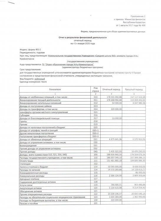 Отчет о результатах финансовой деятельности » Средняя школа №6