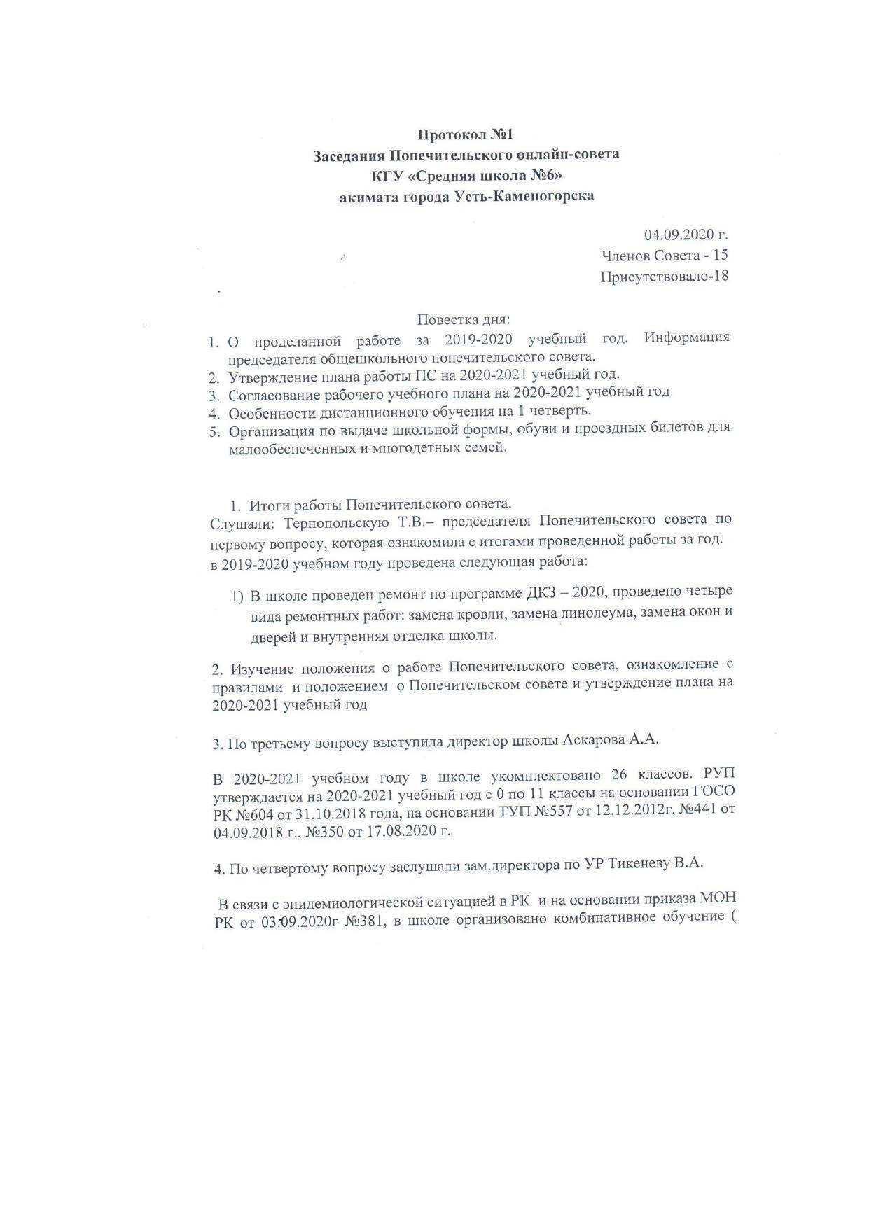 Заседания Попечительского онлайн-совета » Средняя школа №6