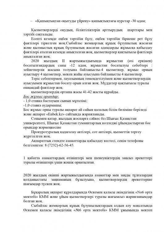 Өскемен қаласының әкімдігі «№6 орта мектеп» КММ мемлекеттік мекеменің қызметіндегі сыбайлас жемқорлық тәуекелдерін ішкі талдау нәтижелері бойынша аналитикалық анықтама » Средняя школа №6