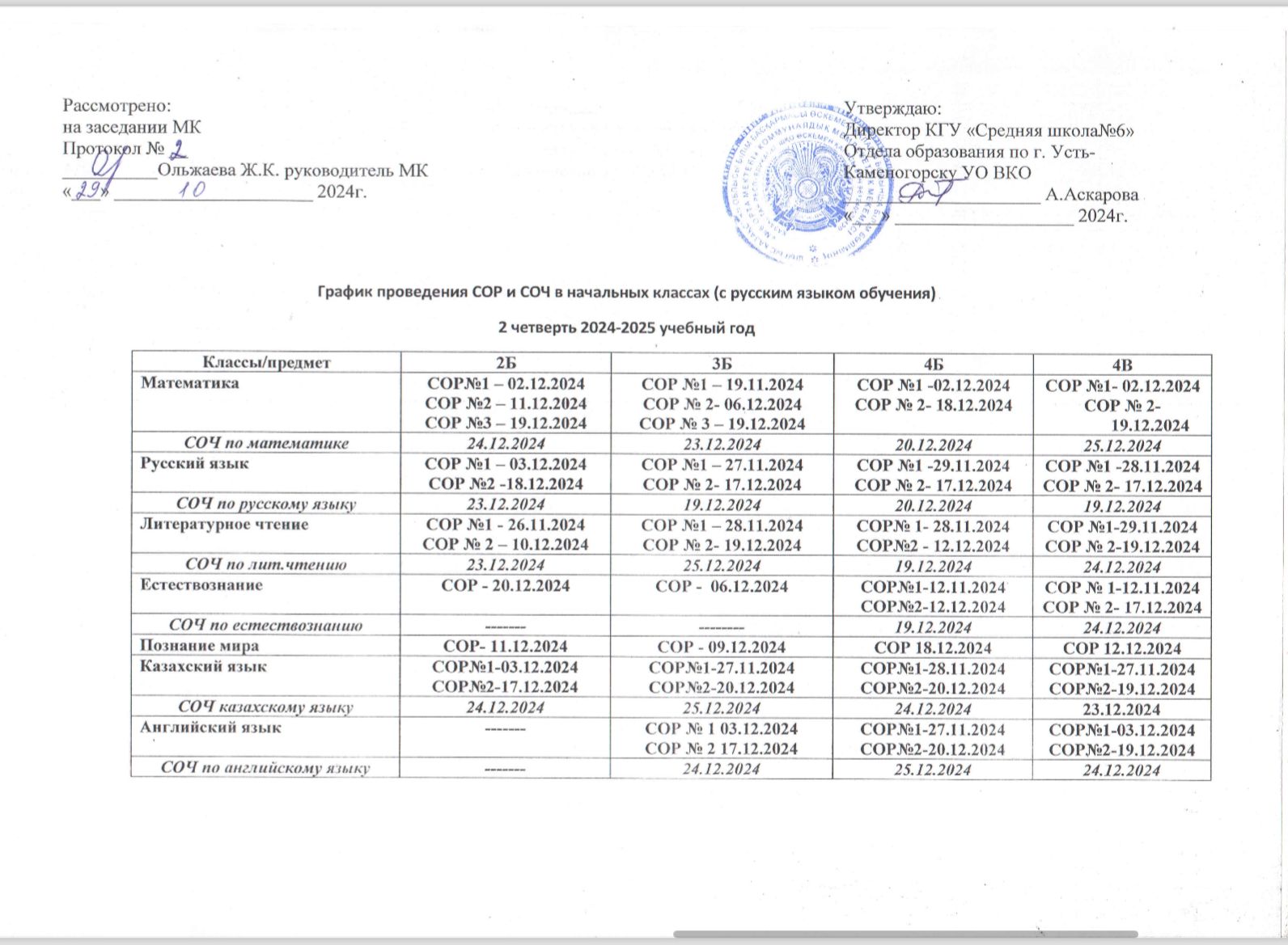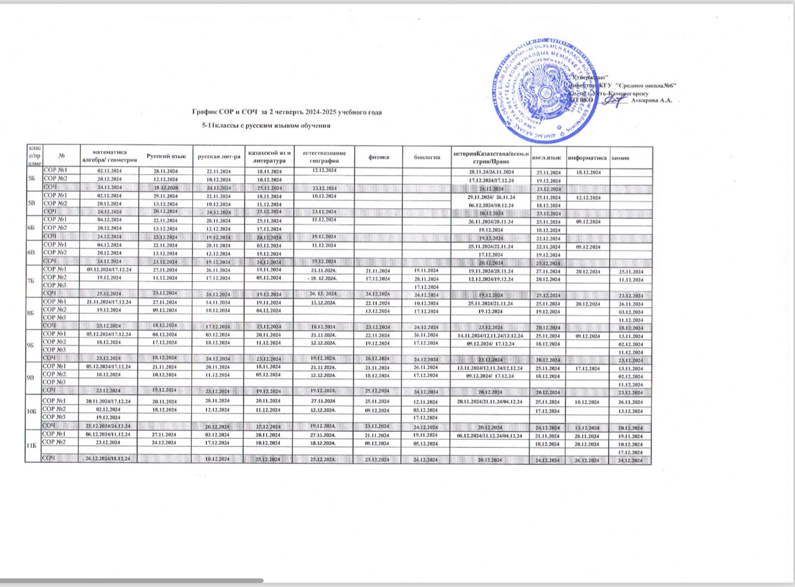 График СОР, СОЧ 2-четверть » Средняя школа №6
