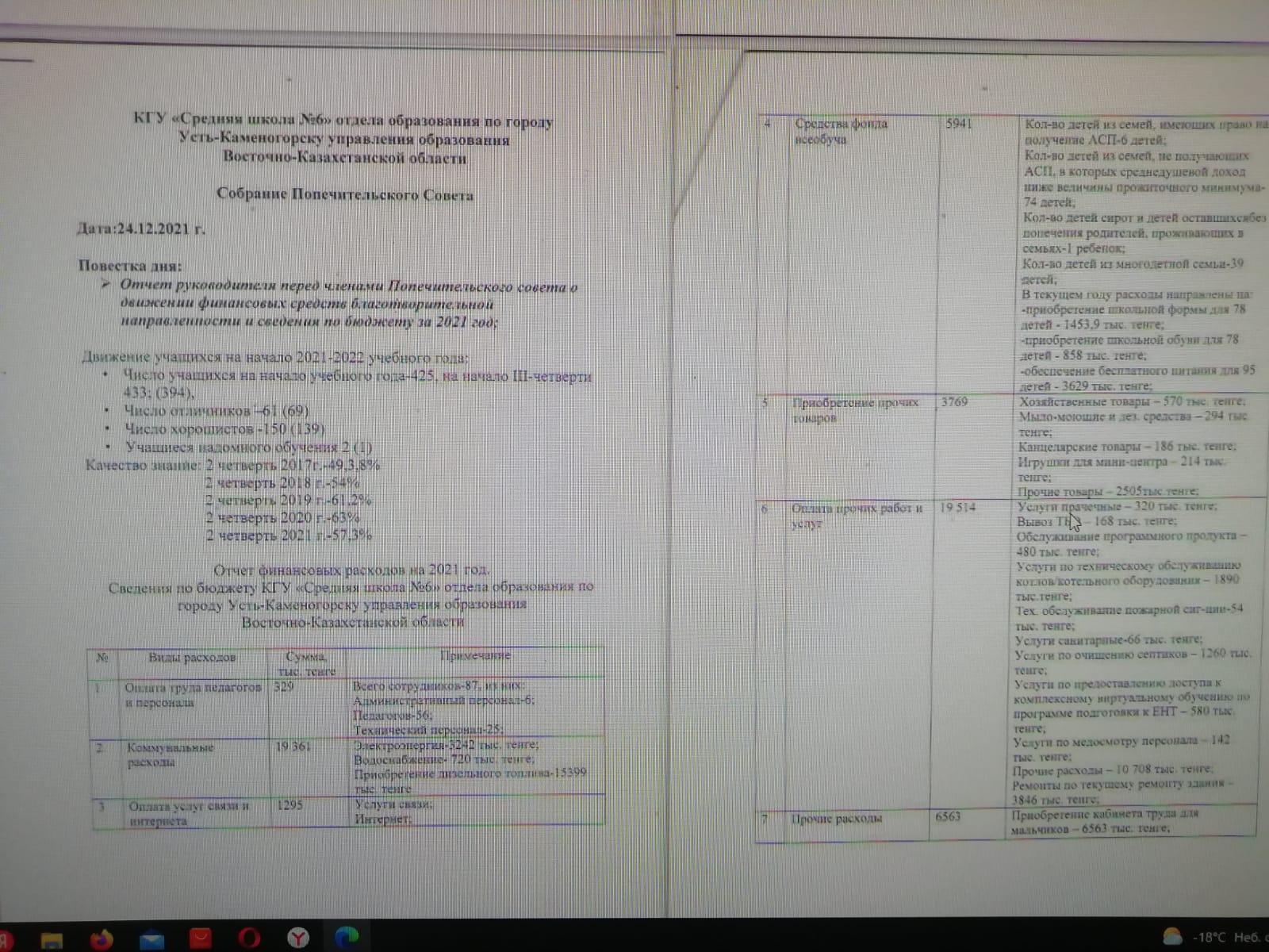 Сведения по бюджету КГУ «Средняя школа №6» отдела образования по городу Усть-Каменогорску управления образования